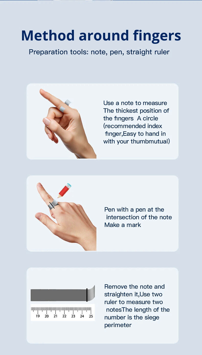 Please use the ring size chart available here. If you are not satisfied with your ring size, please contact our support email to request a replacement.